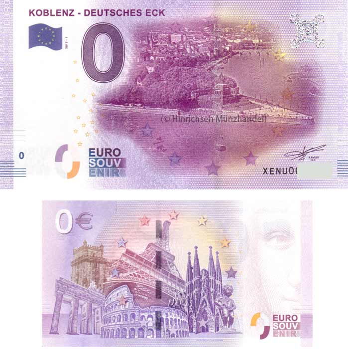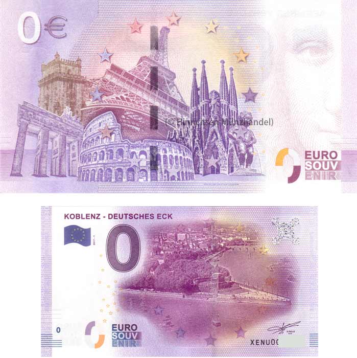 Der erste 0-Euro-Schein von Koblenz mit dem Deutschen Eck aus dem Jahr 2017.