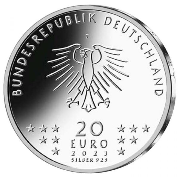 Die Wertseite zeigt einen Adler, den Schriftzug „BUNDESREPUBLIK DEUTSCHLAND“, Wertziffer und Wertbezeichnung, das Prägezeichen „J“ der Hamburgischen Münze, die Jahreszahl 2023 sowie die zwölf Europasterne. Zusätzlich ist die Angabe „SILBER 925“ aufgeprägt.